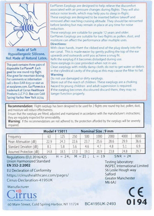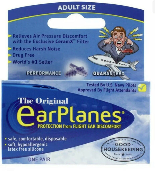 Flying Earplanes - Adult 12+ Ear Plugs - Flight Ear Pain Protection