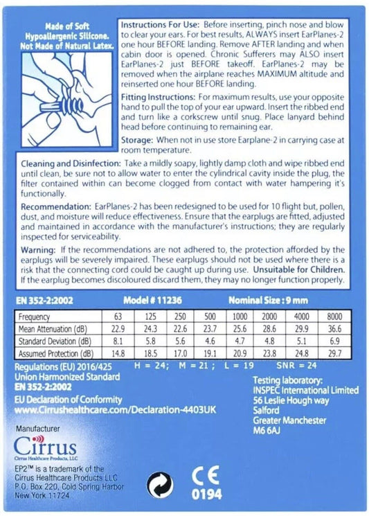 To use the EarPlanes eP2, simply insert them inside your ears when you need them. Before inserting, pinch your noise and blow- this will help clear your ears. For best results, ALWAYS insert EarPlanes eP2 one hour BEFORE landing. Remove AFTER landing and when the cabin door has been opened.