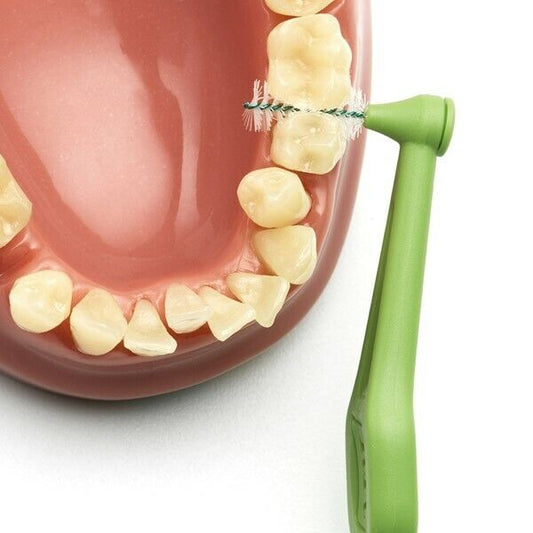 The long handle and angled head allows easier access to the back teeth from the inside and the outside