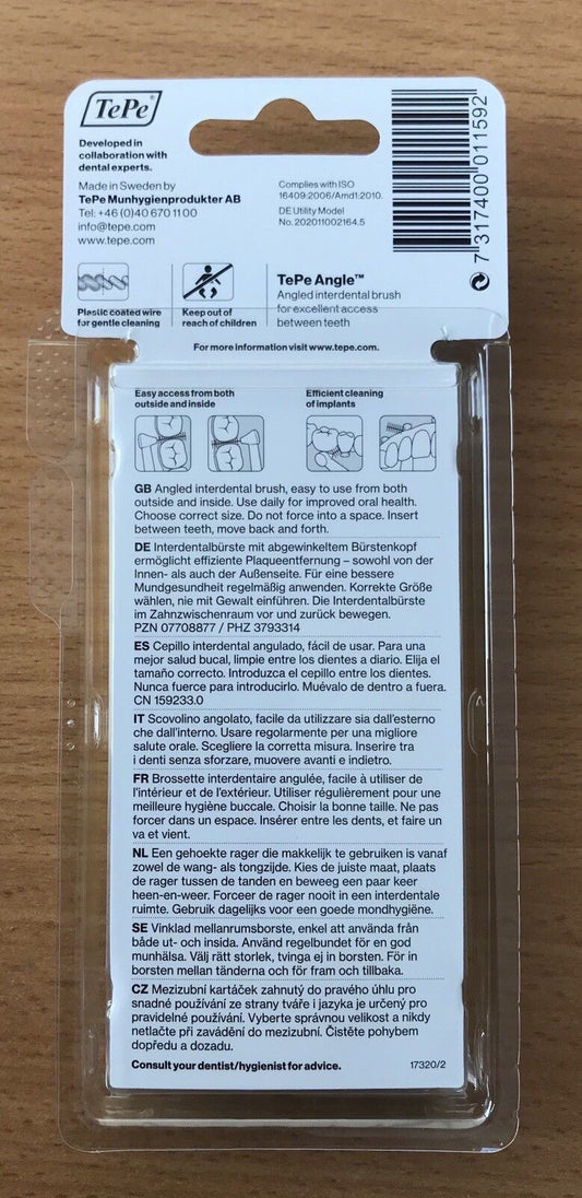 TePe Angle™ Interdental Brushes come in 6 colour coded sizes. TePe Angle™ is developed in collaboration with dental experts to ensure the highest quality in every detail. Daily use can remove up to 40% more plaque than toothbrushing alone.