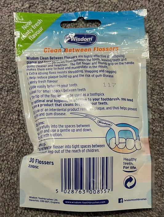 Wisdom Clean Between Flosser Extra Strong Floss Minty - 30 Flossers x 2 packs