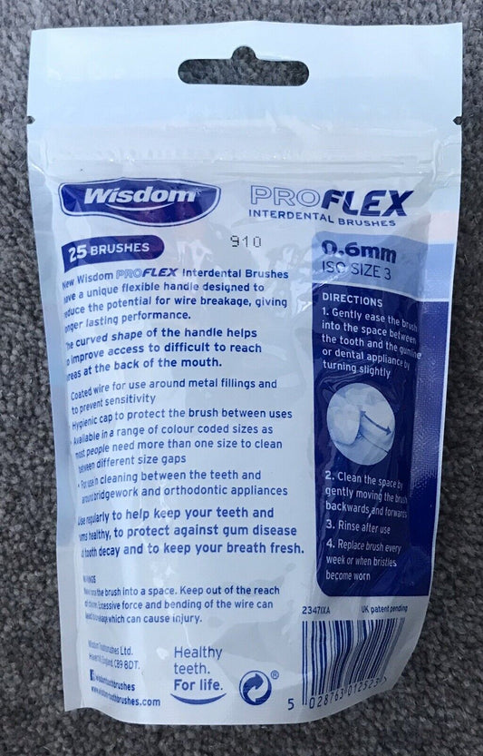 WISDOM PROFLEX SIZE 3 0.6mm Blue Interdental Brushes 25 Per Pack X 2 Packs