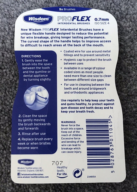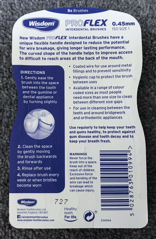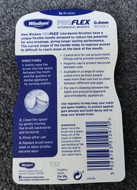WISDOM PROFLEX SIZE 3 0.6mm Blue Interdental Brushes 5 Per Pack X 4 Packs